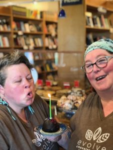 Follow your nose upstairs and you’ll find the two laughing wives and their talented staff busy preparing tasty, locally-sourced food and drink such as Lamb Pita with cucumber, mint yogurt and feta cheese on toasted pita EASY grab-n-go lunch, Chopped Green salad with avocado, cucumber, tomato, shaved salt cured egg & Twin Sisters Whatcom blue cheese, Polenta Bowl with salt roasted beets, goat cheese, house apple-chili gastrique, and the very favorite chocolate “Cake-ettes” - that are completely gluten/dairy free and look GREAT with a birthday candle! Happy FIRST Birthday Evolve Chocolate + Cafe!